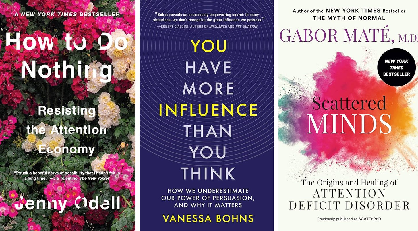 How to Do Nothing by Jenny Odell is a good intro to the attention economy that we all feel so helpless against. I stole You Have More Influence Than You Think from my office. It was an easy read with some good studies on why everyone actually IS looking at you, although not for the reason you thinkβ¦